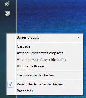 Faire un clic sur la Barre des tâches et sur Propriétés.